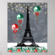 Póster Torre Eiffel de Invierno, globos Navidades por noc