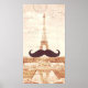 Hola, este diseño vintage representa la Torre Eiffel acompañada del famoso bigote francés.