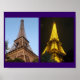 Fotografías de la Torre Eiffel tomadas durante el día y por la noche se colocan juntas para hacer un hermoso poster. Fotos tomadas por LRF.