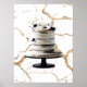 Póster Torta Floral de Grados en Negro y Dorado Blanco To