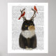 Gato de Tortoiseshell, Antlers y Red Birds de FabFunky. Cuenta con un gato de infantería con pájaros encaramados sobre sus cuernos. | 191375D