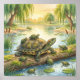 Póster Tortuga Mamá y Crías en Vivero de Estanque