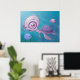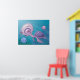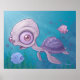 ilustracion personalizado de una tortuga marina nadando con pescado tropical.