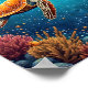 Sea Turtle Underwater - Una vibrante escena submarina cuenta con una gran tortuga marina nadando con gracia a través de un océano azul y turquesa. La carapela de la tortuga es un hermoso naranja y marrón, con patrones complicados. La luz del sol fluye desde arriba, creando un efecto de agitación en el agua. Pequeños peces amarillos nadan alrededor de la tortuga, lo que añade un ambiente animado