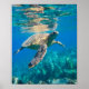Fotografía submarina de una tortuga marina nadando en aguas cristalinas justo debajo de la superficie.
