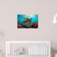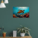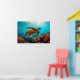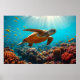 Póster Tortuga marina y muchos peces pequeños bajo el agu