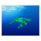 Una pintura digital de una tortuga marina en peligro de extinción en azules oceánicos y verdes suaves nadando bajo el agua en tranquilos mares azules.