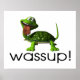 Un diseño feliz y afortunado con una tortuga tonta con la lengua pasando el rato y las palabras, ¡WASSUP!, debajo. Muy lindo, muy divertido.