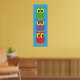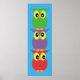 3 lindos búhos sobre un fondo azul. Delgado, vertical. Se adapta en el estrecho espacio entre las cosas. Ovejas dibujadas a mano con dos de ellos sentados en la parte superior formando una pila de lindos búhos. por EML