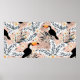 Póster Toucanes, hojas gráficas de palma, flores plumeria