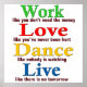 Trabajar como no necesitas el dinero, amar como nunca te has lastimado, bailar como nadie está mirando, vivir como no hay mañana. Pero este regalo con esta inspiración para alguien que vive la vida al máximo