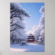 Echa un vistazo a esta obra de arte digital, que representa un modesto templo japonés de madera en el borde de un bosque, y su pacífica belleza invernal. Un paisaje de invierno idílico se crea con una fresca capa de nieve en polvo que cubre toda la zona. El fresco aire de invierno deja entrever las bonitas tallaciones del templo de madera, ya que los copos de nieve adornan los árboles y las plantas cercanas. Acepte la tranquilidad del invierno con esta maravillosa obra de arte digital.