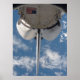 Con el respaldo de una parte azul y blanca de la Tierra, la parte posterior del transbordador espacial acoplado Atlantis (STS-129) aparece en esta imagen fotografiada por un miembro de la tripulación en la Estación Espacial Internacional.