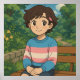 Cute anime transgender person in a trans sweater sitting outside on a bench. A sweet poster to say hi and keep in touch with friends or family.