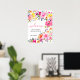 Bohemio audaz color de agua floral ducha de novia poster de bienvenida con flores brillantes pintadas a mano rosa, naranja, flores amarillas y hojas de eucalipto verde y follaje índigo con un estilo moderno de guijarros en blanco. Invitación nupcial perfecta para primavera y verano, temática fiesta y al aire libre.