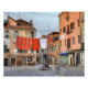 La ropa de naranja encaja bien en el paisaje de los alrededores en venice italy
