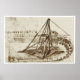 Póster Treadmill Powered Digging Machine, Da Vinci