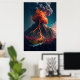 At first glance, it looks like just an ordinary erupting volcano. But a closer look reveals a beautiful orange tree growing up the side of the volcano with roots that look like lava and leaves that look like fire. A beautiful surreal landscape with a river, pretty red and pink trees below with smoke and ash erupting into the sky. A fantastic conversation piece and beautiful addition to your art collection.