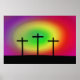 Tres cruces en negro sobre un fondo colorido y brillante. Ideal como tema general cristiano o para Pascua especialmente.