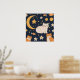 Adorable lindo jengibre gatitos entre estrellas, luna, planetas y peces por la noche. Fantástico espacio arte moderno. Arte contemporáneo sobre el tema del espacio y la ciencia ficción.