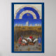 El Libro de Horas fue un libro de oraciones que se hizo popular en Francia alrededor del año 1400 y fue hecho para el príncipe francés Jean de Berry. De Wikipedia: Cada mes del calendario se asignan dos páginas, una para el calendario y otra para la miniatura y un arco semicircular. El calendario ofrece al lector días en los meses solar y lunar, así como grandes fiestas y santos por cada día. Enero es la mayor miniatura del calendario e incluye al duque de Berry en una fiesta de Año Nuevo. Varias de las miniaturas representan al Duque, campos o castillos que poseía y lugares que visitó. Esto retrata la función personal del libro de horas, ya que es personalizado para adaptarse al patrón. Añadir un marco, imprimirlo en lienzo o comprar las invitaciones coincidentes.