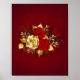 La composición de dos rosas rojas pintadas artistalmente y un rosa dorado, decorado con oro, hojas de joyas sobre fondo texturado.