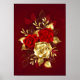 La composición de dos rosas rojas pintadas artistalmente y un rosa dorado, decorado con oro, hojas de joyas sobre fondo texturado.
