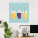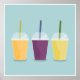 Tres suavizantes en tazas muy coloridas y listas para beber. Este diseño parece realmente efectivo en este Poster