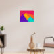 Un diseño geométrico fresco. Muchos triángulos y pirámides de colores vivos. Los colores son rojo rosado, azul turquesa, azul brillante, violeta real, naranja y amarillo. Un diseño contemporáneo.