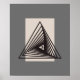 Este llamativo diseño juega con perspectiva y simetría, llevándote a un túnel triangular aparentemente infinito contra un fondo beige suave y gris carbón. Los triángulos estratificados disminuyen gradualmente en tamaño, lo que conduce a un pequeño punto focal en el centro, creando una sorprendente sensación de profundidad. Perfecto para los amantes de las líneas depuradas y del arte minimalista, esta pieza le aporta un toque intrigante y moderno a cualquier espacio.