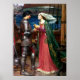Reproducción de "Tristan and Isolde Sharing the Potion" de 1915 por John William Waterhouse. Este trabajo capta el momento en que Tristan y Isolde consumen la poción de amor que fue para llevar a un amor y una tragedia eternos. El trabajo original se encuentra en una colección privada. Waterhouse a menudo re-creó escenas del mundo del mito como lo hicieron muchos de sus compañeros pre-Raphaelites. Waterhouse nació de pintores ingleses en Roma que regresaron a Inglaterra cuando tenía cinco años. Ingresó a la Real Academia de Arte en 1871 cuando tenía 21 años y al cabo de tres años tuvo una pintura exitosa. Durante los siguientes cuarenta años, Waterhouse mantuvo su éxito y continuó pintando hasta que su última enfermedad hizo imposible la producción en 1915. Murió dos años después.