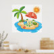 A tropical island picnic scene with a turtle and hot sun. This design looks really effective on these Poster