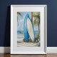 Bring easy, beach house calm to your walls with this Tropical Surfboard Coastal Art Print from the Nautical Blue collection by TinkPrints. A bold blue surfboard, swaying palms, and soft sandy neutrals create a fresh coastal focal point that works beautifully in bathrooms, bedrooms, and entryways. Designed to coordinate with your Nautical Blue palette, this print pairs well with blue and white decor, natural textures, and light wood accents for a clean, pulled together coastal look.