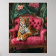 Póster Tropical Tiger on Pink Sofa Poster Eclectic Tiger
