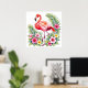 Póster Tropical Watercolor Pink Flamingo Floral Hawaiian