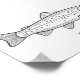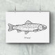 Un poster con el ilustracion de una trucha en línea de arte y mensaje de texto debajo : arte de pared perfecto para decoración de oficina, escuela o casa. También será un regalo perfecto para un pescador, un guía de pesca, un amante del pescado, etc.