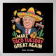 Con este divertido diseño de Trump de "Hacer el Taco Martes Grande otra vez", ¡sazone tu juego de comida! Perfecto para hombres, mujeres, niños, padres y amantes del taco que disfrutan de las vibraciones mexicanas, de las gallinas de los pájaros y de un lado del humor político. Fantástico para Cinco de Mayo, Halloween, o difundir conciencia a nivel de salsa picante sobre salud mental con un giro vintage.