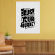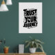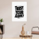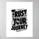 This bold, artistic typographic design features the motivational quote "TRUST YOUR JOURNEY" in a striking vertical layout. Each word is crafted with intricate outlines, wavy details, and dynamic curves for a flowing, eye-catching effect. Perfect for inspiring dreamers, creatives, and anyone embracing personal growth and self-discovery.