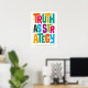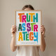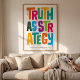Choosing clarity in a world that profits from confusion. A bold typographic print in vibrant, paint-drip letterforms - each letter a different color, the message one clear conviction. Brings energy and personality to any wall without losing its edge. Great for creative spaces, studios, or anyone who values straight talk. Designed in a 3:4 format for balanced proportions. Recommended sizes: 12x16, 15x20, 18x24, 24x32, 30x40 inches. Available on Value Poster Paper (Semi-Gloss) and Archival Heavyweight Paper (Matte) - choose the quality that fits your space.