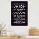 Poster del estilo de rodadura de la Comisión de Tránsito de Toronto. Hay paradas en la línea de metro Yonge-University-Spadina. Lista de estaciones en poster: Cartel "University-Spadina", Union, St. Andrew, Osgoode, St. Patrick, Queen's Park, Museum.