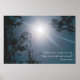 La foto (horizontal) del sol a través de las ramas de los árboles muestra la cita de la Escritura: "Tu palabra es una lámpara a mis pies, y una luz a mi camino". Salmos 119:105