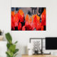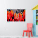 Rather than a literal landscape, the artwork focuses on atmosphere and rhythm. The repeated tulip shapes create a sense of depth and movement, as if the field is stretching endlessly beyond the frame. The contrast between the vibrant florals and the restrained background adds tension and sophistication, blending natural beauty with a contemporary, abstract edge.