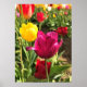 Una hermosa variedad de tulipanes de primavera en la granja de Tulipanes de Madera en Woodburn, Oregón. Vista de arriba hacia abajo de un tulipán rosado-violeta con otros tulipanes coloridos que lo rodean. Foto tomada en abril de 2018.