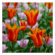 En el jardín se pueden observar bonitos tulipanes naranjas en el parque. Fondo de la sala de descanso. Pequeños costos - mucho (mar) positivo para el equipo. Adecuado para una habitación (lugar) de descanso en horas difíciles. Una actitud positiva y buena hacia el trabajo. Se puede usar como fondo para un selfie. La foto fue tomada en junio de 2022. El poster es adecuado para la decoración interior.
