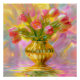 Añade un toque de elegancia y vitalidad a tu espacio con esta magnífica obra de arte floral con tulipanes rosas en un jarrón dorado. En un entorno de ensueño, de tonos pastel, el diseño es muy acogedor y bonito, perfecto para los amantes de la decoración, los regalos y la naturaleza. Ideal para el arte mural, los estuches de teléfono y los accesorios.