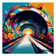 Una vibrante pintura digital del túnel de Tran i. El túnel está cubierto por pintadas de colores. La pintura captura la belleza y la energía del túnel