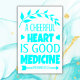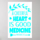 Un Corazón Alegre es Buena Medicina, Poster, en Archivo de Papel Pesado (Matte) en color turquesa sobre blanco que exuda un sentido de resonancia espiritual.