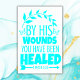 Por sus heridas has sido curado, Poster, en el Archivo de Papel Pesado (Matte) en turquesa sobre blanco, lo que exuda un sentido de resonancia espiritual.