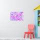 El diseño presenta un giro de mármol multicolor en un esquema de color rosa, violeta y turquesa.