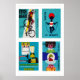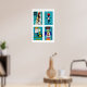 Póster Turquoise Czech Matchbox Labels Grid Print